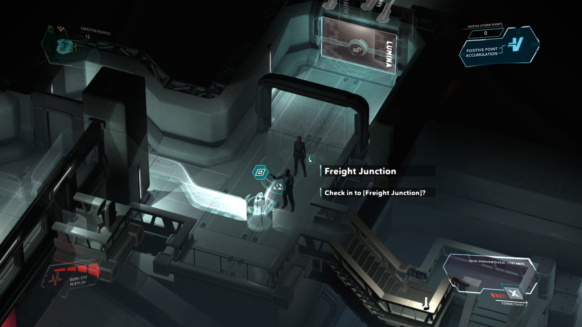 Combat in Divide is stacked heavily against the player. Each encounter has the potential to get completely out of hand. Combat areas, big and small, can be directly assaulted using a futuristic side-arm and the potential aid of an ally. The player also has the option to slink through using stealth and misdirection by hacking the enemy’s own communication.